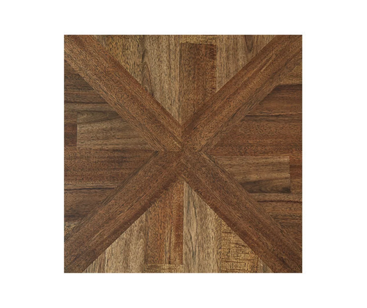 Similar to mixed media art, this accent table set combines the modern appeal of metal with the rustic qualities of wood for a striking meld of earthy elements. Beautiful butterfly-patterned veneer transforms the everyday in an extraordinary way.
